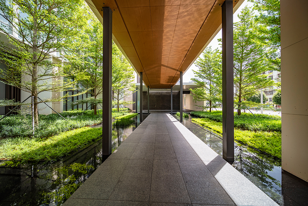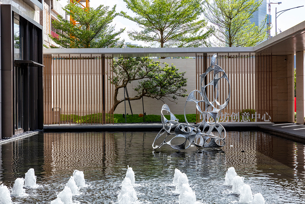 展示區(qū)工程總面積4415平方米,全線引水入園、挖地成池。水是園林的靈魂,“無(wú)水不成園”,水變化不定的形態(tài)和豐富的人文內(nèi)涵,為園林景觀空間增添了浪漫的色彩和深遠(yuǎn)的意境。采用了中國(guó)園林中最富特色的建筑之一景觀廊,極具游走動(dòng)感的游廊,襯托了靜態(tài)的園林,顯現(xiàn)出動(dòng)態(tài)之美,與水、植物情景交融,構(gòu)成了優(yōu)美的風(fēng)景畫(huà)卷。