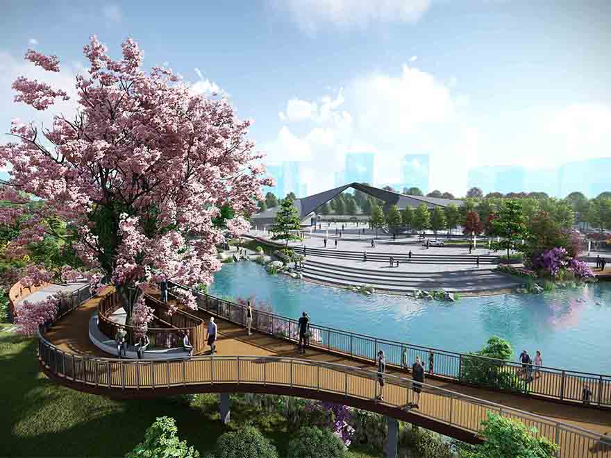 本次施工范圍按設(shè)計(jì)圖紙分為三個(gè)段,分別為科技段、生態(tài)段、人文段。其中重要節(jié)點(diǎn)有茅洲之源節(jié)點(diǎn)、同觀濕地節(jié)點(diǎn)、茅洲畫(huà)卷節(jié)點(diǎn)、東坑橋節(jié)點(diǎn)、休閑運(yùn)動(dòng)場(chǎng)地節(jié)點(diǎn)、南光高速橋底節(jié)點(diǎn)。