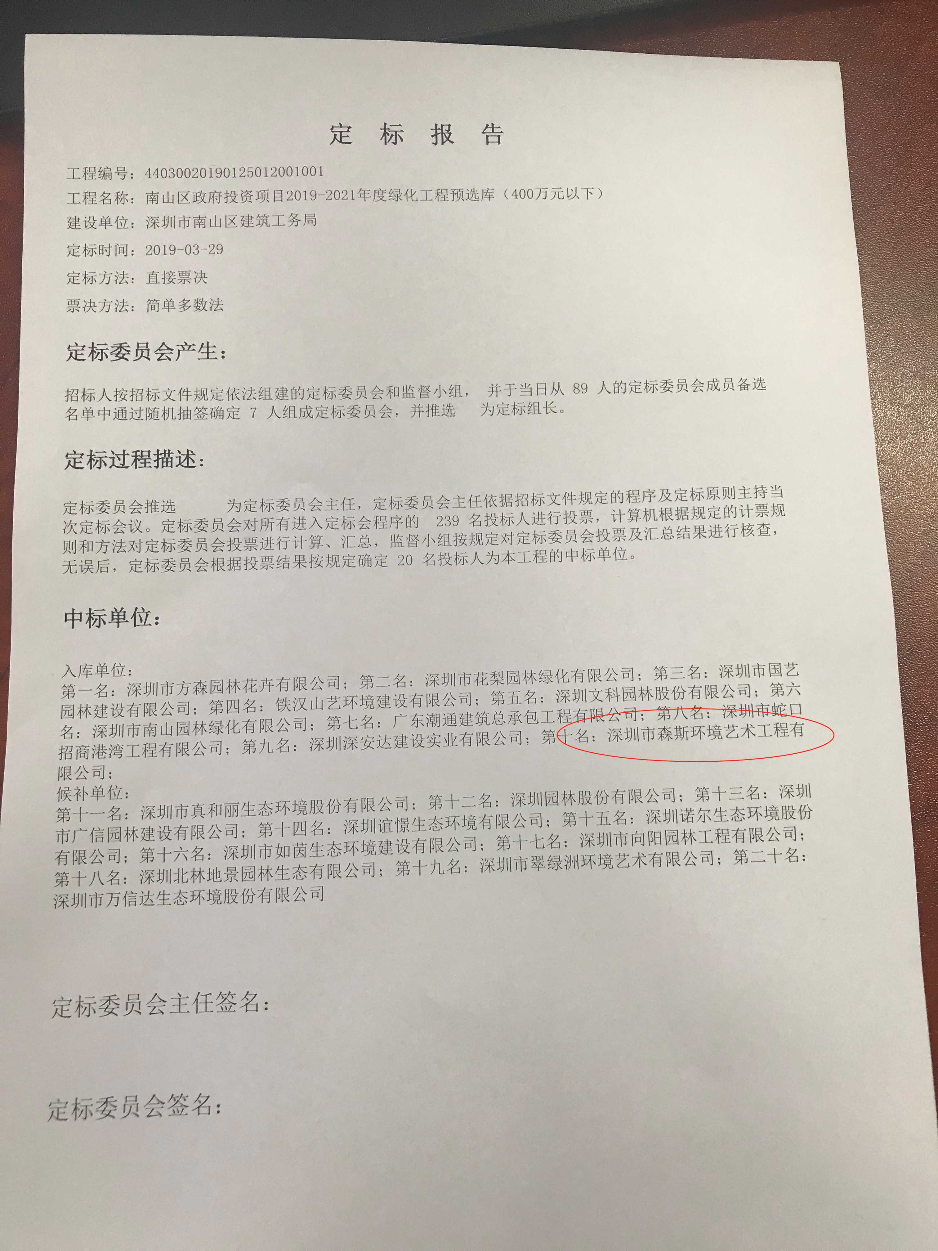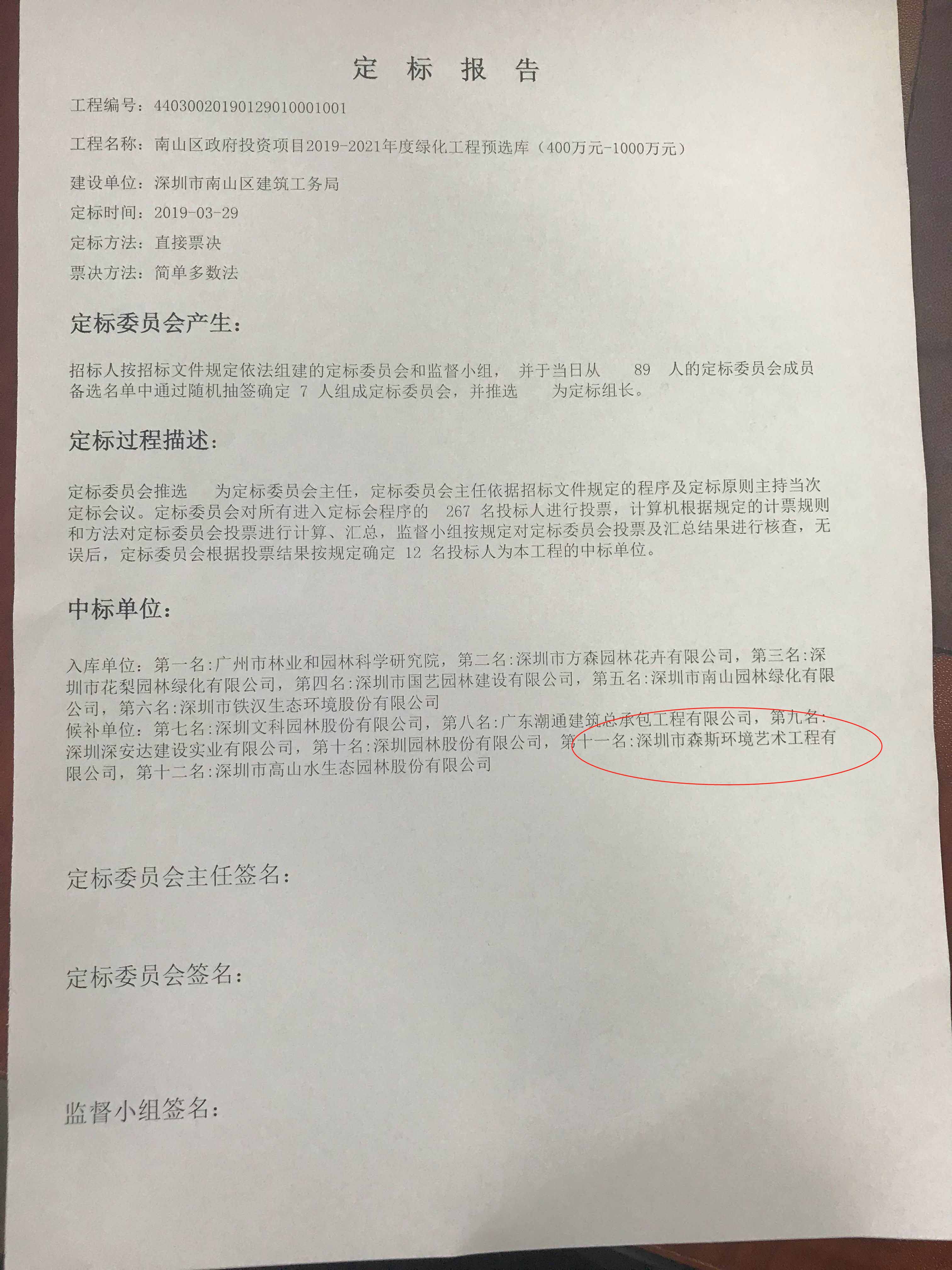 2019年3月29日,南山區(qū)政府傳來捷報,我司成功入庫南山區(qū)政府投資項目2019-2021年度綠化工程預(yù)選庫(400萬元以下),且成為南山區(qū)政府投資項目2019-2021年度綠化工程預(yù)選庫(400萬元-1000萬元)的候補入庫單位。