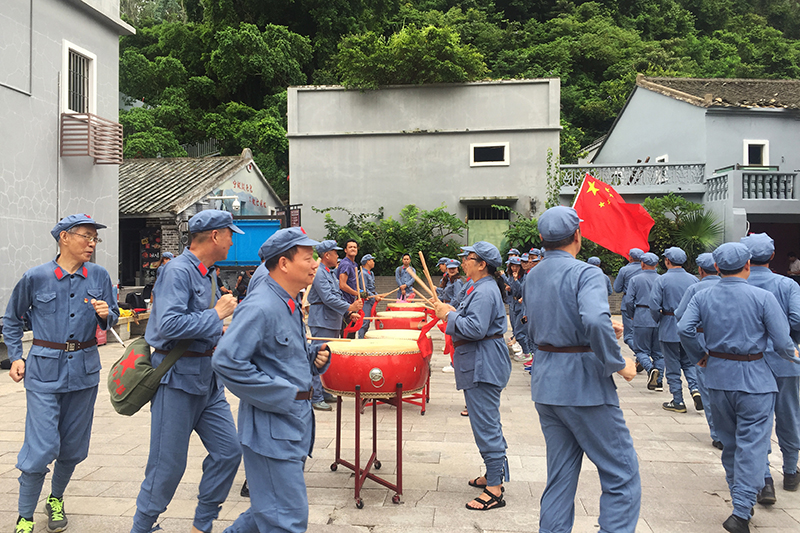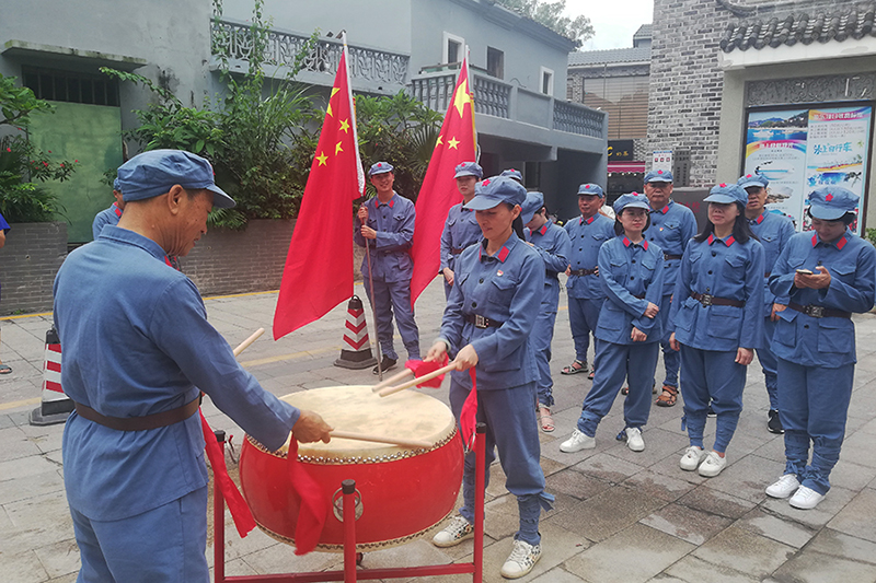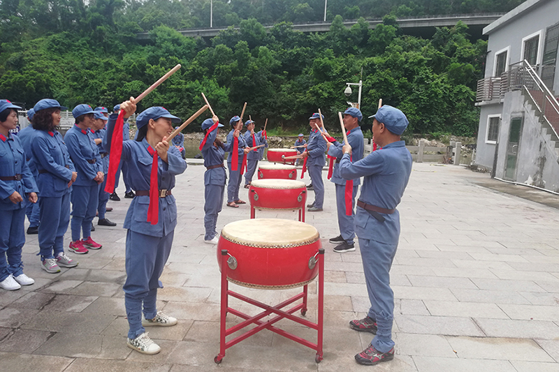 活動(dòng)中,大家穿著東江縱隊(duì)彼時(shí)作戰(zhàn)的軍服,背著軍工包,扛著五星紅旗,敲軍鼓戴軍帽身體力行體驗(yàn)了一把東縱當(dāng)年熱血抗日的崢嶸歲月。
