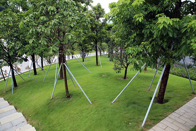 該項(xiàng)目是光明區(qū)公共服務(wù)平臺(tái)園林綠化配套工程,包含A、B、C三個(gè)地塊,總占地面積為65544m2。其中A、B地塊為平地, C地塊為山體。項(xiàng)目的規(guī)劃與設(shè)計(jì)整合了光明新區(qū)“綠色、創(chuàng)業(yè)、和諧”的三大發(fā)展目標(biāo),提出綠色行政公園的概念,它北接新城公園,東通廣深港客運(yùn)專線光明站,以綠色公共空間縫合三大功能區(qū),激活了城市的多樣性。