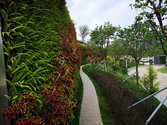 在項(xiàng)目實(shí)施中,我們響應(yīng)上一級(jí)規(guī)劃理念,以人性化、功能性、以及生態(tài)和可持續(xù)性原則為核心展開設(shè)計(jì)與施工,凸顯光明區(qū)城市廣場(chǎng)生態(tài)、人文、科技三大特色,打造智匯、生態(tài)、和諧的廣場(chǎng)面貌。其中特色景觀——山體擋墻立體綠化圖案提取中國(guó)傳統(tǒng)文化元素,以鳳凰為原型,擬借鳳凰喜慶、太平、幸福的祥瑞象征,寓意光明區(qū)的發(fā)展不斷向前推進(jìn),像偉大祖國(guó)一樣繁榮昌盛、欣欣向榮!
