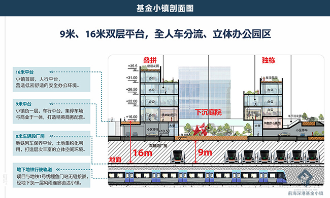 從園林景觀工程的層面來說,處在地鐵前海車輛段上蓋的本項目的場地條件非常特殊,它在包含了一系列復雜的豎向設計和交通組織要求的同時,還必須做到符合基金小鎮(zhèn)打造財富精英生活圈的理念,并且與當前國家建設海綿城市的方針政策相協調。