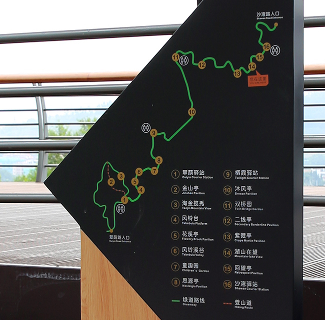 “該綠道以梧桐山山水生態(tài)環(huán)境體驗(yàn)為中心,以“精致”“野趣”為出發(fā)點(diǎn)和立足點(diǎn),結(jié)合物聯(lián)網(wǎng)停車管理、智能導(dǎo)行、智慧照明等系統(tǒng)建設(shè)智慧型綠道,通過雨水種植池、滲透性鋪裝、濾水草帶、景觀洼地等一系列雨水鏈設(shè)計(jì)建設(shè)海綿型綠道,延續(xù)梧桐山生態(tài)環(huán)境,構(gòu)建完整的綠色廊道。”