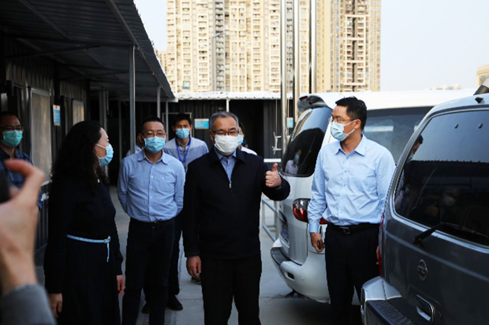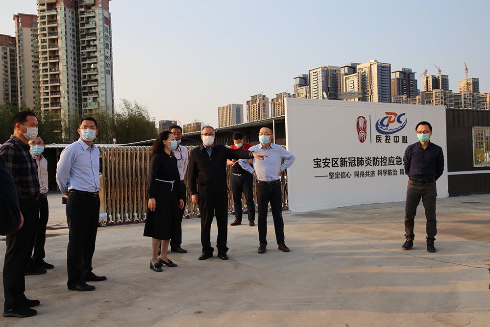 3 月 10 日下午,深圳市寶安區(qū)政府黨組成員、副區(qū)長李懿一行蒞臨寶安區(qū)新冠肺炎防控應急處置中心指導疫情防控和項目建設工作。