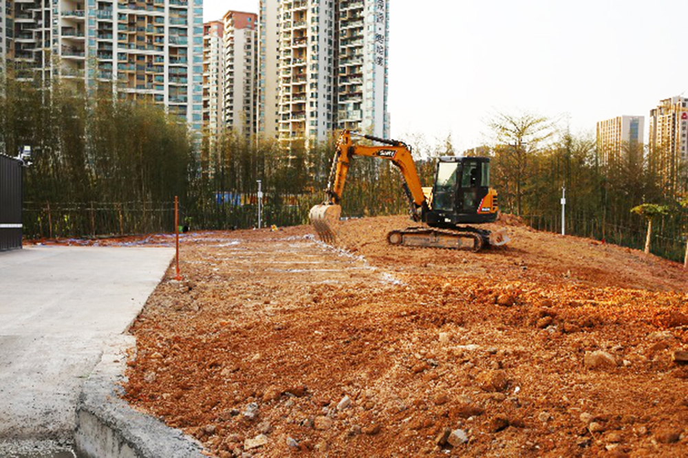 為確保施工現(xiàn)場安全有序進展,公司每天都有 30 多名技術施工人員和 2 臺機械設備施工作業(yè)。現(xiàn)階段已經(jīng)基本完成地形平整和微地型藝術造型,已經(jīng)完成建筑外圍剛竹林帶的種植。完工時間指日可待!