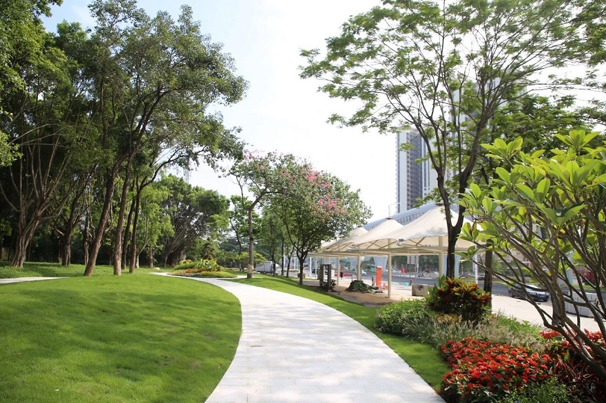 概況:該綠化工程路段由深圳市森斯環(huán)境藝術(shù)工程有限公司和杭州G20團隊共同施工設(shè)計,是光明大道的主要景觀節(jié)點,長約2.5公里。