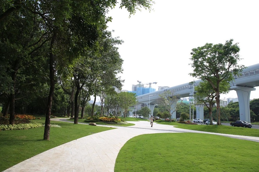 原件采用新型雕塑與現(xiàn)代式拱橋建筑,園景環(huán)繞,搭配圓形弧道盤旋而出,站在橋上一眼望去,仿佛一幅生動的油畫展示眼前。光照未來公園作為光明區(qū)標(biāo)志性景點,同時也是人們拍攝婚紗照的好選擇。