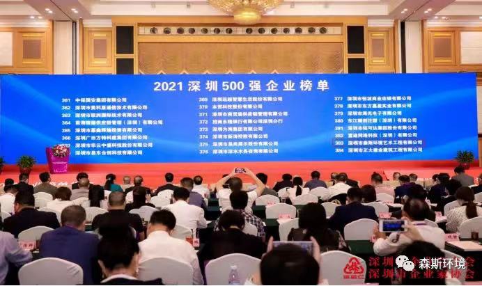 喜訊|森斯環(huán)境上榜 “2021深圳500強(qiáng)企業(yè)”榜單,董事長徐向明獲評“深圳百名行業(yè)領(lǐng)軍人物”!