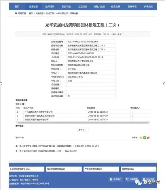 一分耕耘,一分收獲。努力之下獲得的成果,讓人倍感芳甜,就在3月30日,深圳人才安居陽光招采發(fā)來好消息:深圳市森斯環(huán)境藝術工程有限公司中標龍華安居尚龍苑項目園林景觀工程。