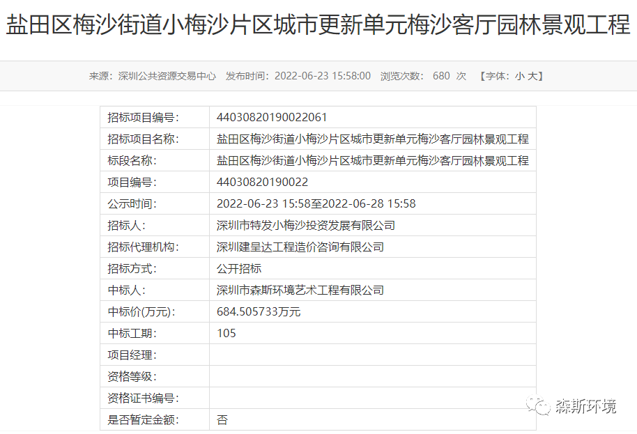中標(biāo)喜訊 | 森斯環(huán)境中標(biāo)鹽田區(qū)梅沙街道小梅沙片區(qū)城市更新單元梅沙客廳園林景觀工程