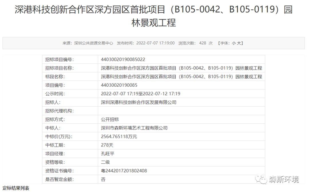 中標(biāo)喜訊 | 森斯環(huán)境中標(biāo)深港科技創(chuàng)新合作區(qū)深方園區(qū)首批項目(B105-0042、B105-0119)園林景觀工程