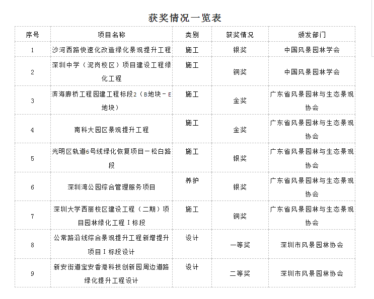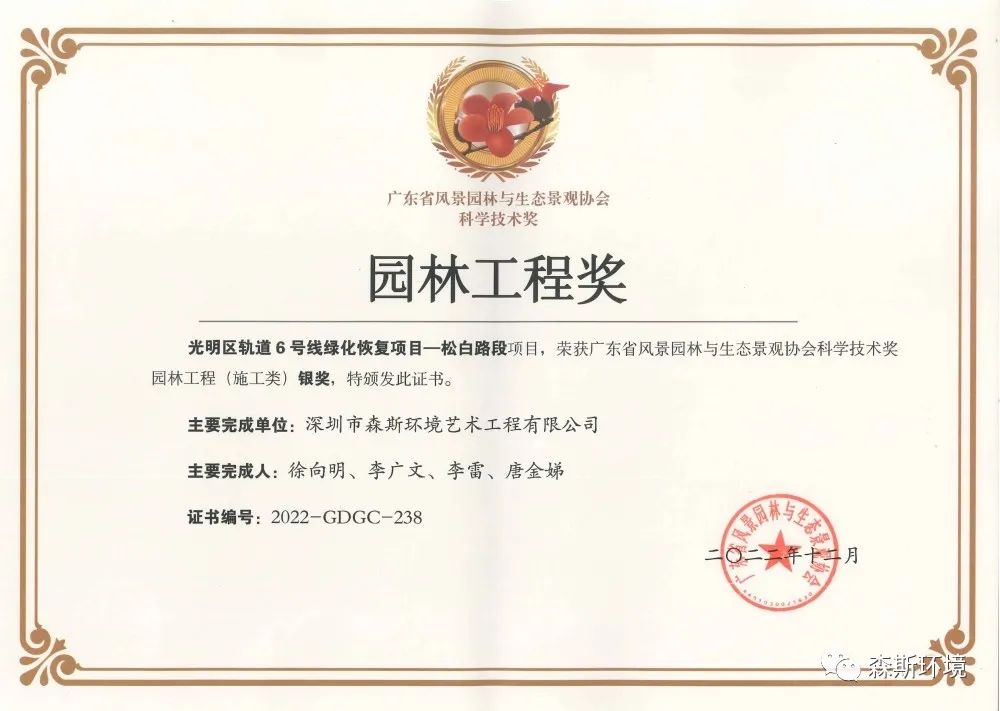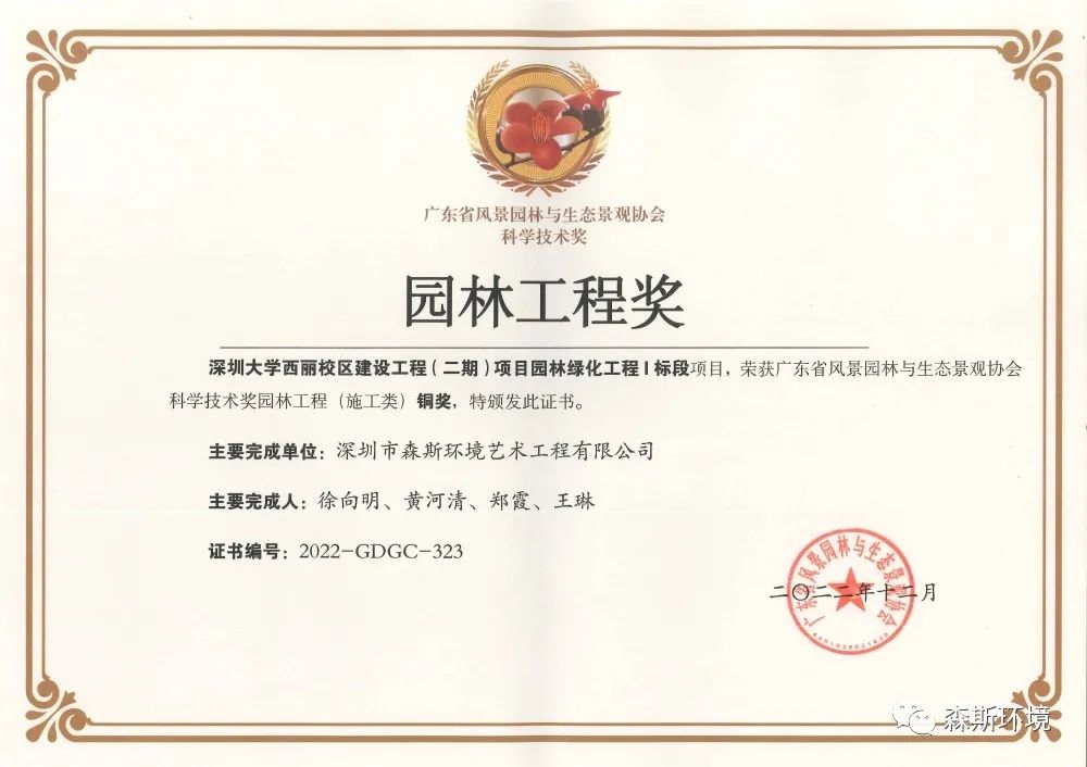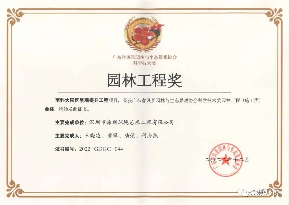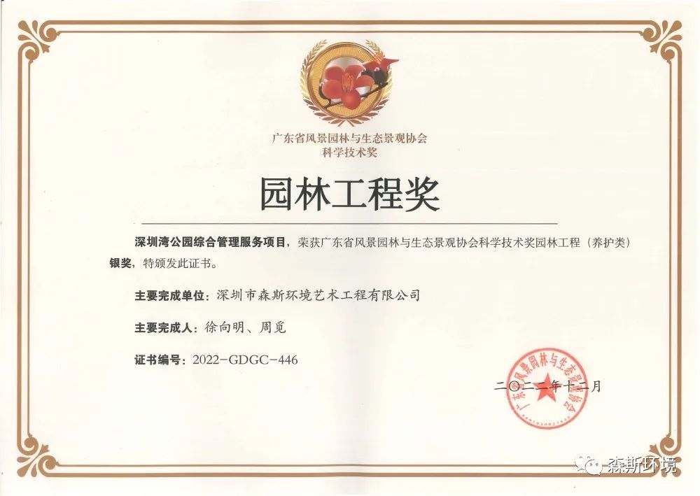 近日,中國風景園林學會、廣東省風景園林與生態(tài)景觀協(xié)會和深圳市風景園林協(xié)會先后公布2022年申報獎項的獲獎名單,森斯環(huán)境申報的設計、施工和養(yǎng)護項目,共榮獲3金4銀2銅“九項大獎”,成績斐然!