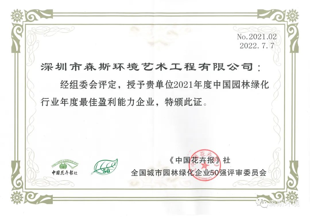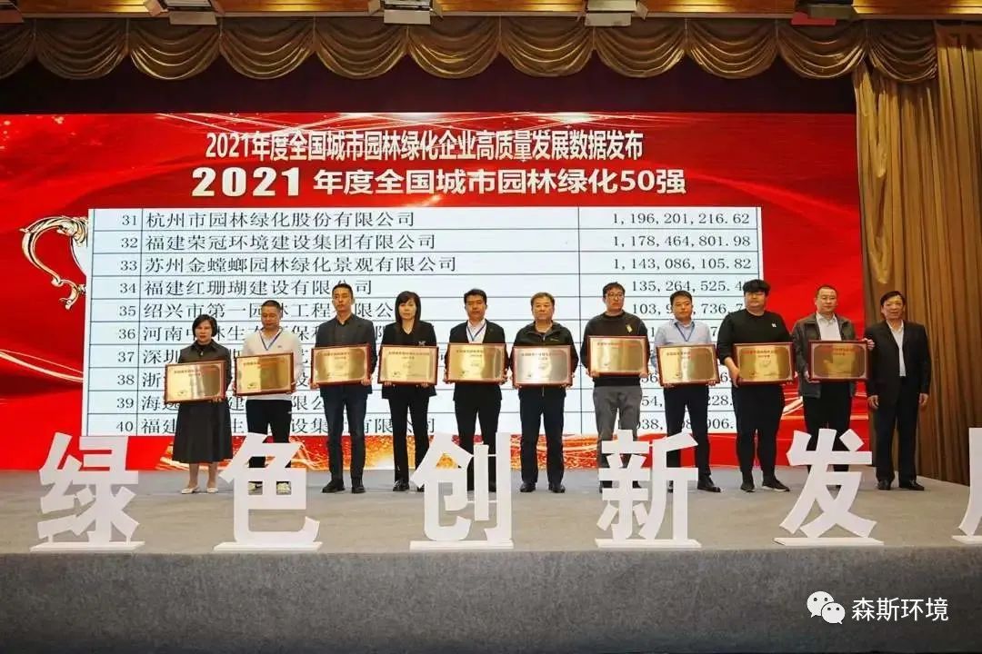 喜訊 | 森斯環(huán)境上榜2021年度全國(guó)城市園林綠化企業(yè)50強(qiáng)并榮獲2021年度中國(guó)園林綠化行業(yè)年度最佳盈利能力企業(yè)