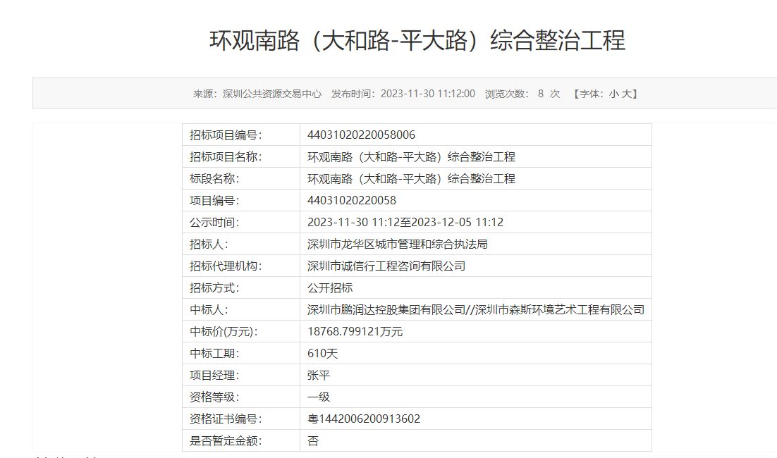 本項目位于深圳市龍華區(qū),全長約6.5公里,建設(shè)面積約為259015平方米。工程分為兩個標段,一標段主要對道路兩側(cè)人行道、中央綠化帶綜合整治,二標段主要對水文化科普公園、科創(chuàng)公園社區(qū)共享公園、兒童友好公園、藝術(shù)門戶等綜合整治,合同總造價18768.799萬元。