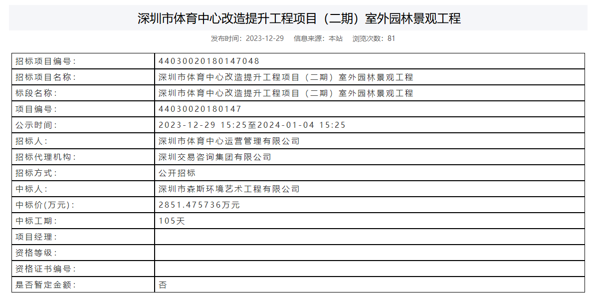 中標(biāo)喜訊|2023完美收官!森斯環(huán)境中標(biāo)深圳市體育中心改造提升工程項(xiàng)目(二期)室外園林景觀工程!