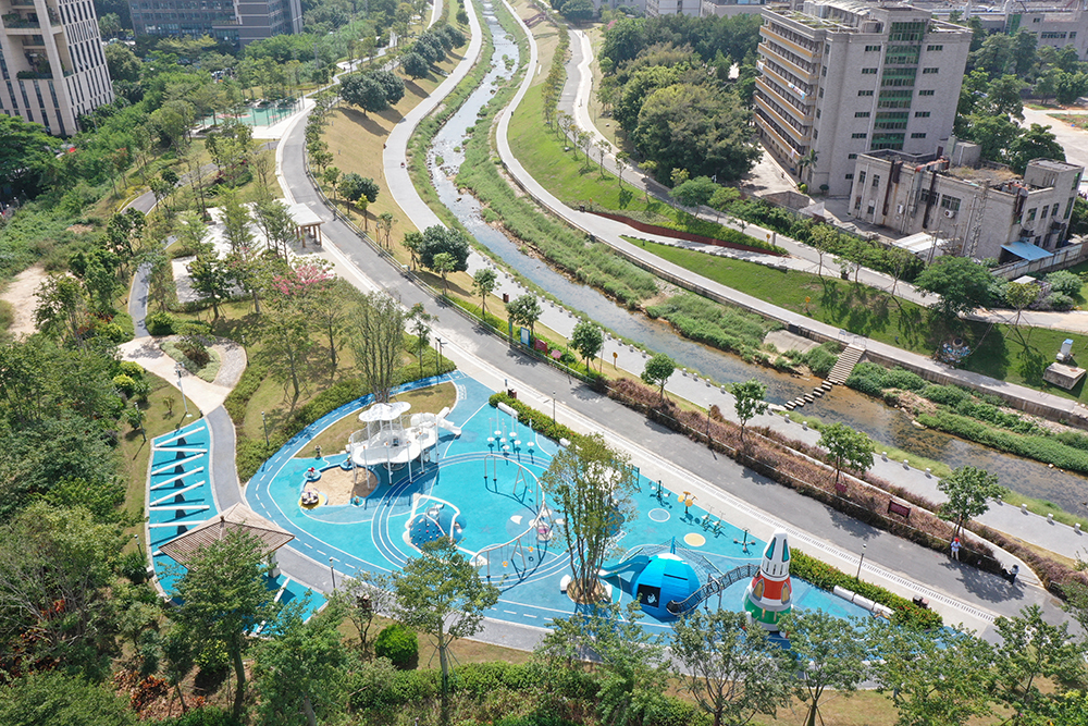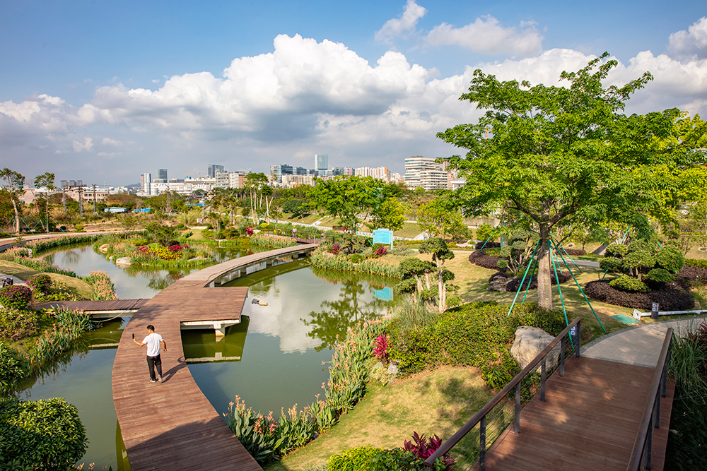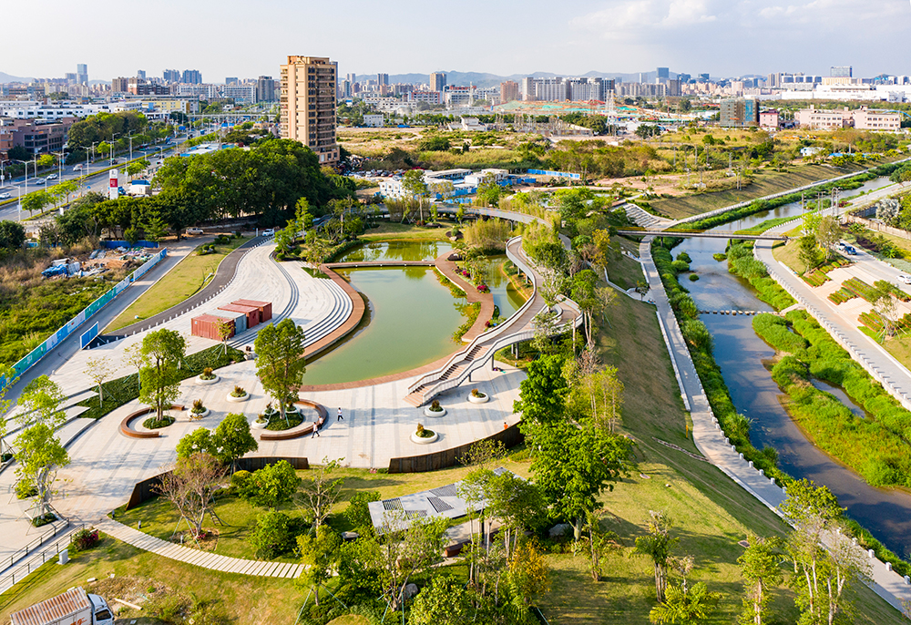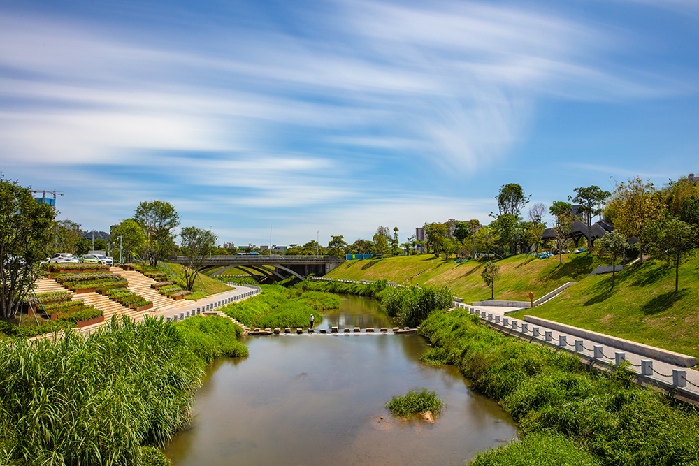 本項(xiàng)目長(zhǎng)14.6公里,景觀(guān)面積91.3公頃,是集設(shè)計(jì)、采購(gòu)、施工為一體的大型河道景觀(guān)綜合整治工程。主要景觀(guān)節(jié)點(diǎn)有茅洲之源、同觀(guān)濕地、茅洲畫(huà)卷、東坑橋、休閑運(yùn)動(dòng)場(chǎng)地、橋底體育運(yùn)動(dòng)公園等,是以高水平設(shè)計(jì)、高標(biāo)準(zhǔn)施工打造的光明區(qū)“生態(tài)脊梁”,是集水清、岸綠、景美于一體的茅洲河綠色生態(tài)長(zhǎng)廊,為周邊居民提供了優(yōu)質(zhì)的休閑漫步空間。