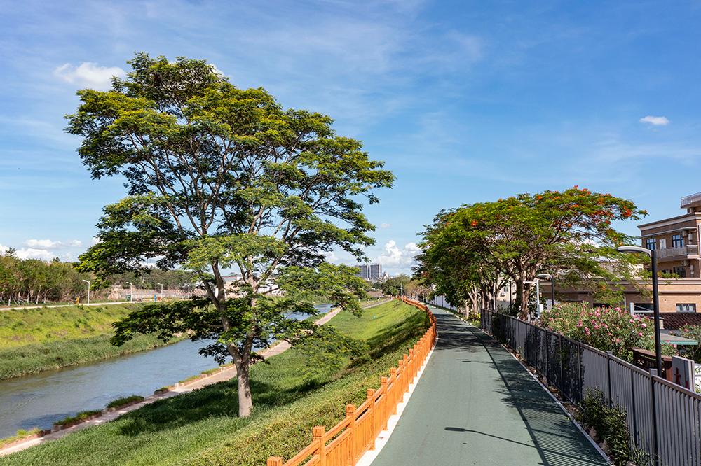 本項目包括觀瀾河、白花河沿線5.8公里長的綠道、綠廊景觀、鋪裝及配套設施的建設,總面積10.2萬平方米。由于觀瀾河兩岸的土地情況較為復雜,在建設工程中,森斯環(huán)境公司發(fā)揮在EPC工程中的主觀能動性,與建設單位共同努力,一同解決了項目周邊土地整備及綠道改線的問題。這條兼具生態(tài)功能和景觀效應的“綠色長廊”,已成為龍華區(qū)的美麗風景線,真正實現(xiàn)了“青山綠水繞、觀瀾入畫來”的建設愿景!