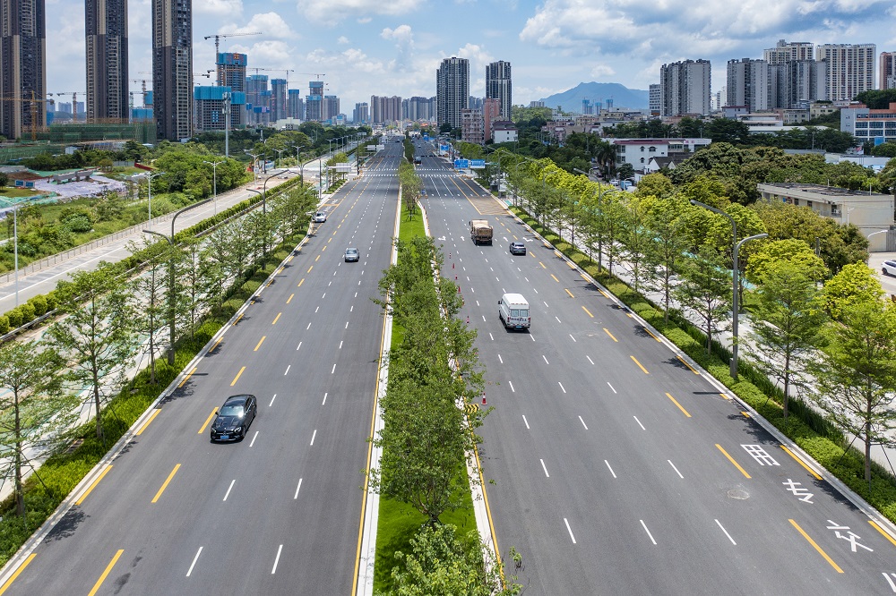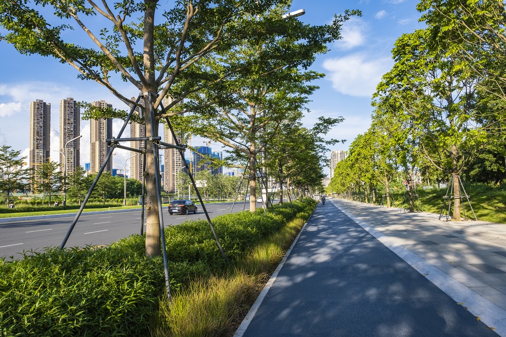 坪山大道南段綠化景觀工程位于坪山區(qū)碧嶺街道,西起中山立交,東至沙湖一路,南接南坪快速路,長約3.4公里,綠化面積87244.4㎡。項目主要工作內(nèi)容為:坪山大道兩側(cè)人行道、中分帶、沿坪山河一側(cè)空地的回填土造地形、苗木種植、園林小品與園林水電安裝工程。本項目的植物景觀定位為:四季有花、舒朗通透、生機盎然,為周邊社區(qū)居民創(chuàng)造了一個良好的休閑環(huán)境。該定位既契合了深圳市建造花園城市的主旨,為建設(shè)生態(tài)文明做出了一份貢獻,提高了居民幸福指數(shù)。
