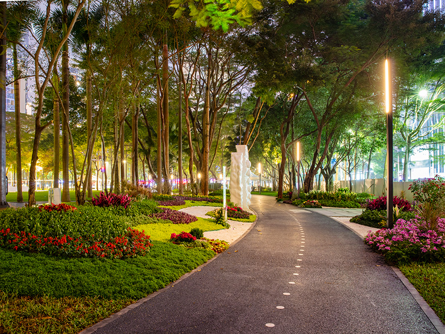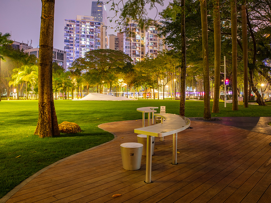 本項(xiàng)目為深圳市南山區(qū)城管綜合執(zhí)法局公園改造工程,面積2.7萬(wàn)平方米,保留了全園喬木,并延續(xù)南海大道喬木花林;塑造可進(jìn)入、活動(dòng)豐富的無(wú)界大草坪,連接書(shū)城與園區(qū),營(yíng)造文化客廳,疏林草地的開(kāi)敞氛圍,簡(jiǎn)潔、疏朗、通透、大氣;在各入口處,配置了植物品種多樣、層次豐富的花境,以自然斑駁的形式種植,在株高、色彩和季相上達(dá)到自然和諧,滿足都市人們回歸自然的期望。